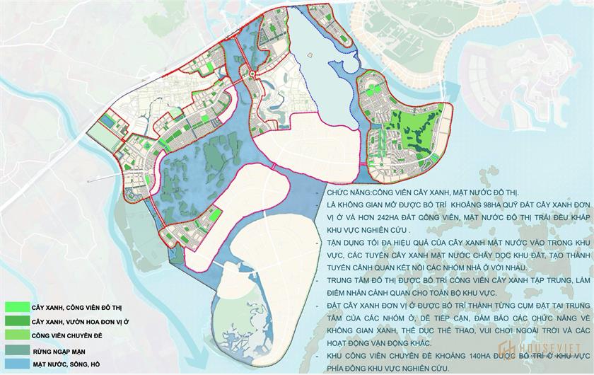 - Một mạng lưới hệ thống khuôn viên xanh tinh xảo thông liền những mặt nước với nhau và với những tiện nghi khu đô thị chính, trợ giúp người dân tới được với những tiện nghi này vào vòng 5 tới 10 phút.