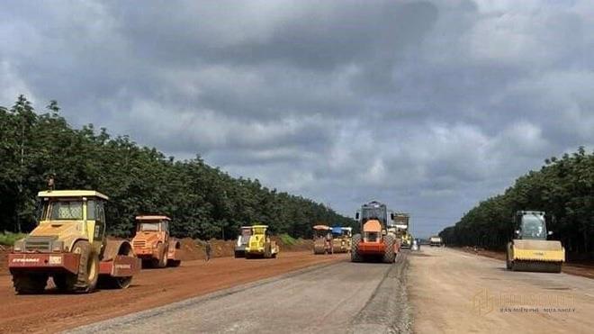 Một đoạn tuyến Dầu Giây – Phan Thiết trong quá trình thi công. Ảnh: Thùy Trang