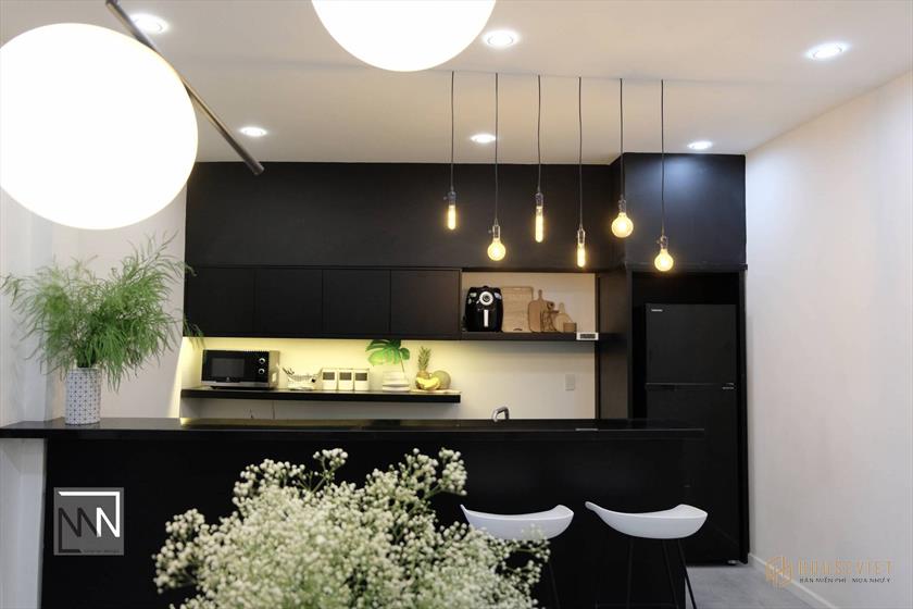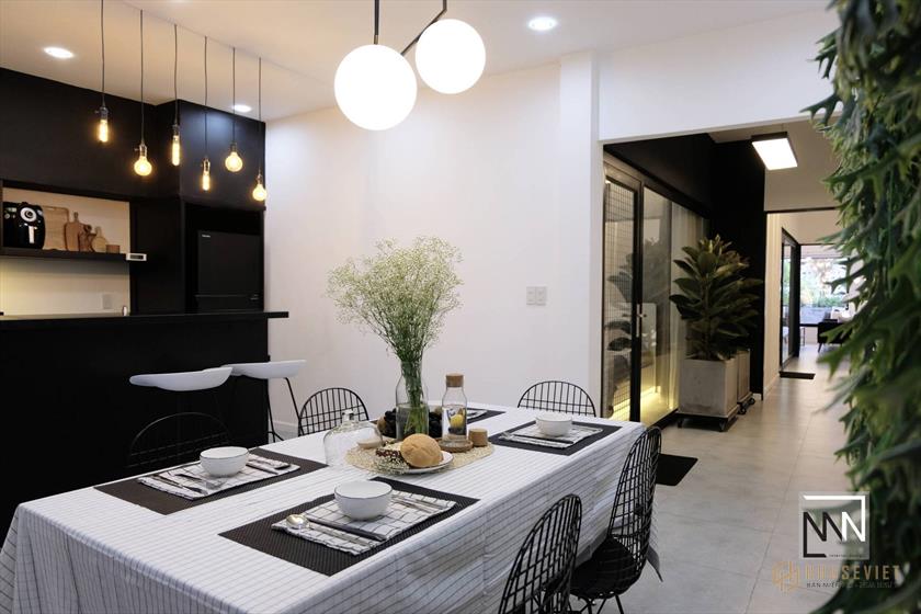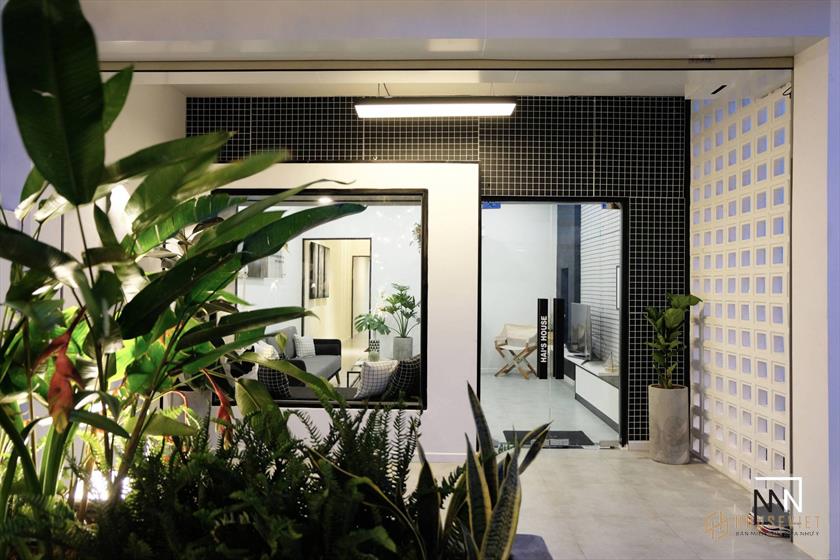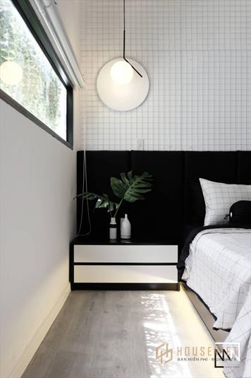 Chủ nhà là một người trẻ tuổi nên kiến trúc sư đã thiết kế không gian theo phong cách hiện đại. Toàn bộ ngôi nhà sử dụng 2 gam màu trắng – đen: trắng mang lại cảm giác thoải mái, sạch sẽ; Màu đen tạo ra sự tương phản và nổi bật. Bên cạnh đó, màu xám của xi măng và màu xanh của cây cối là những chi tiết giúp không gian trở nên hài hòa hơn.