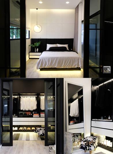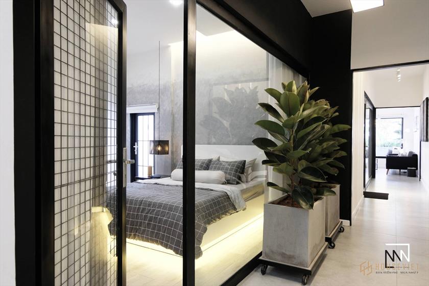 Phòng ngủ và kho chứa đồ cũ liên thông giúp gia chủ có nhiều khu vực thay đồ tiện lợi. Thiết kế không gian hiện đại đầy cá tính và tinh tế