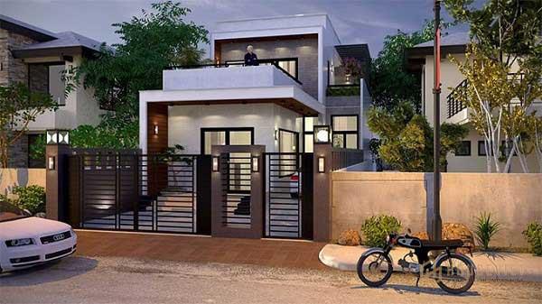 Mẫu thiết kế nhà 2 tầng 2 mặt tiền 700 triệu với điểm nhấn là ban công tầng 2. Công trình có phần nhô ra bên ngoài, tạo điều kiện cho mọi người có thể ngắm nhìn khung cảnh hùng vĩ xung quanh cũng như tận hưởng nắng gió. Thiết kế nhà mái bằng không còn quá xa lạ nhưng điểm đặc biệt ở đây là phần mái được thiết kế nghiêng về phía sau giúp thoát nước khi trời mưa to, nhanh chóng và thuận tiện hơn, hạn chế tối đa tác động của các yếu tố. Thời tiết ảnh hưởng và tác hại đến các công trình nhà ở. Cổng vào được thiết kế vô cùng thông thoáng, đơn giản nhưng vẫn toát lên sự sang trọng và chất lượng.