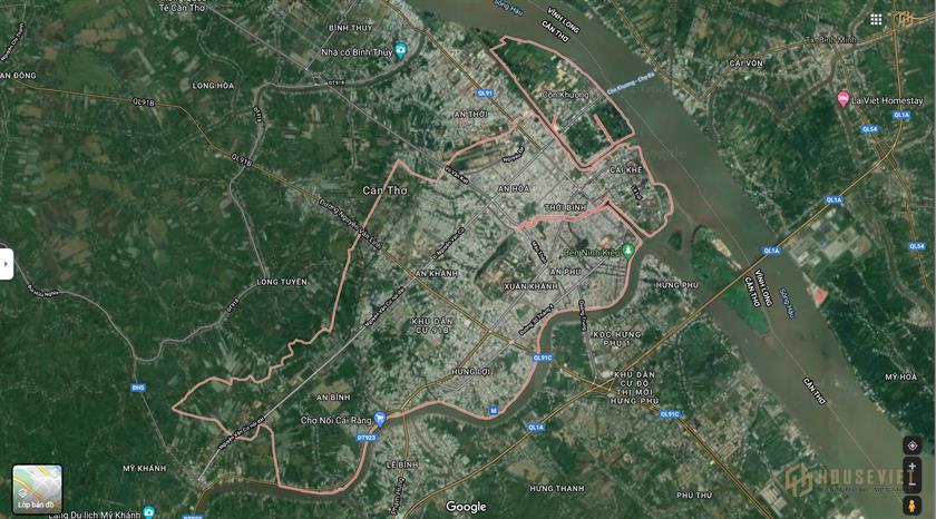 Vị trí Quận Ninh Kiều, Thành phố Cần Thơ nhìn từ vệ tinh