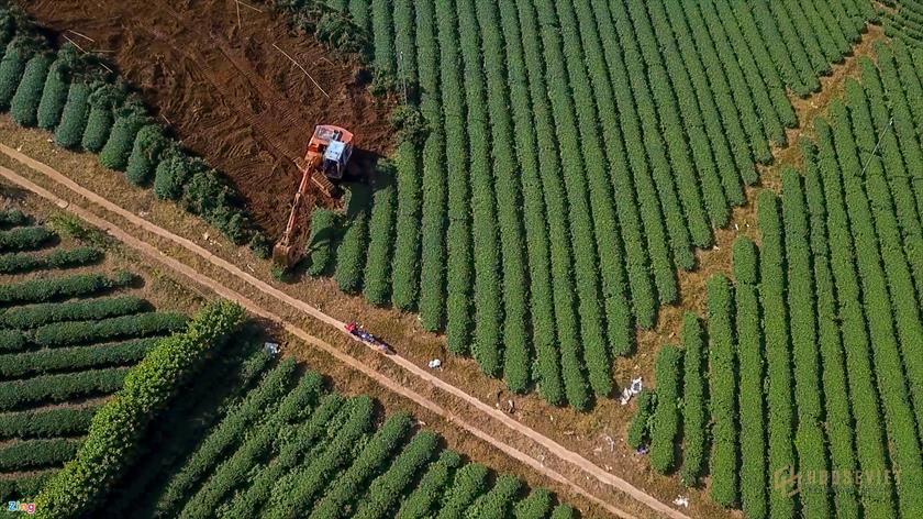 Những gốc chè cổ thụ bị đào lên bật gốc không thương tiếc. “Họ thu mua đồi chè với giá chỉ rất cao, tiếp sau đó mang lại máy vào đào hết chè sở dĩ mở đường, phân lô bán nền. Đâu đâu cũng xuất hiện dự án Bất Động Sản”, anh H. một người dân địa phương cho thấy thêm.