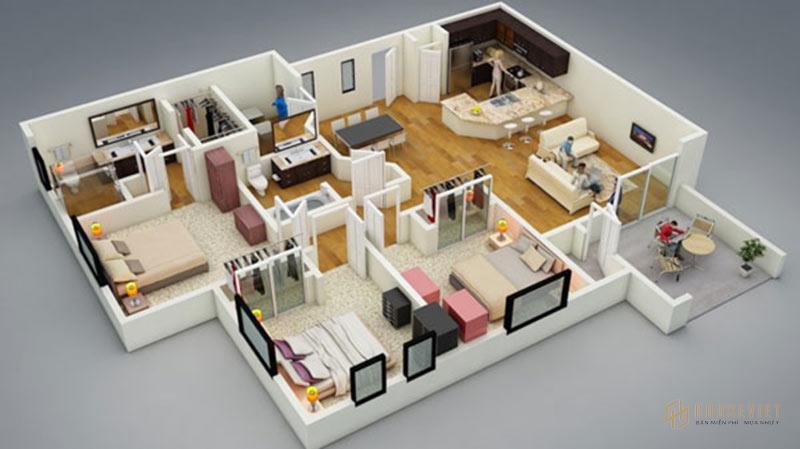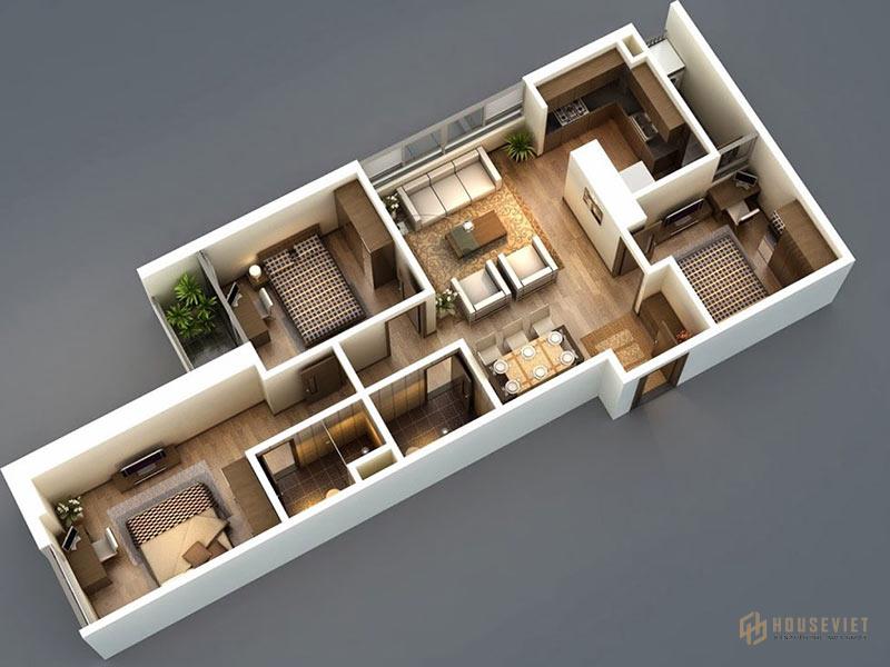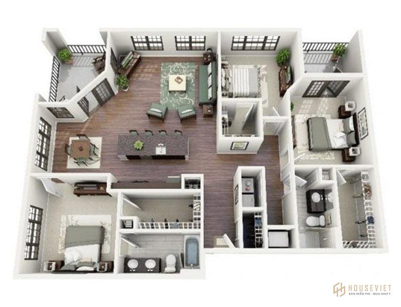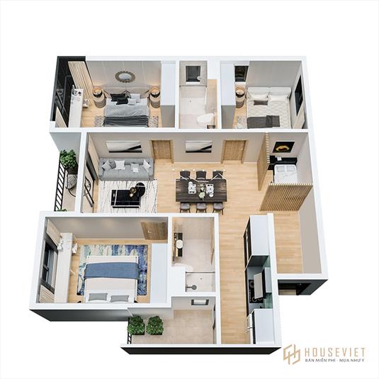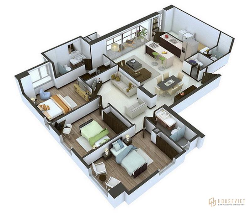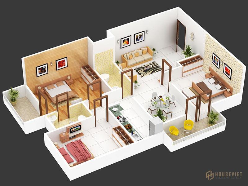 1. Thiết kế căn hộ 3 phòng ngủ cơ bản là gì?