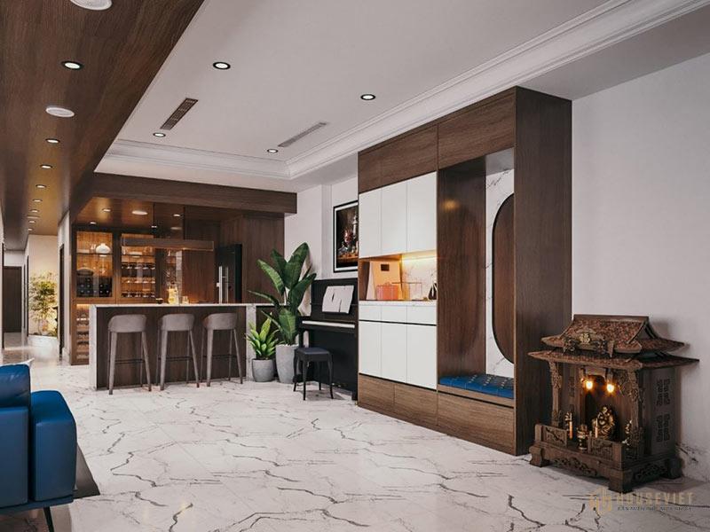 Mẫu 7: Căn hộ 3 phòng ngủ nội thất gỗ hiện đại