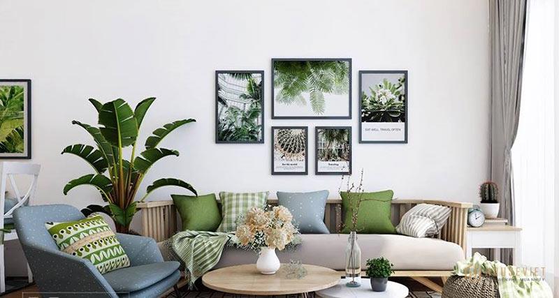 Gia chủ có thể trồng một vài cây xanh để không gian sống thêm thoáng mát, trong lành. Lựa chọn nội thất gia đình màu xanh lam hay treo những bức tranh hoa lá tươi mát cũng là một giải pháp hợp lý để hóa giải các yếu tố phong thủy.